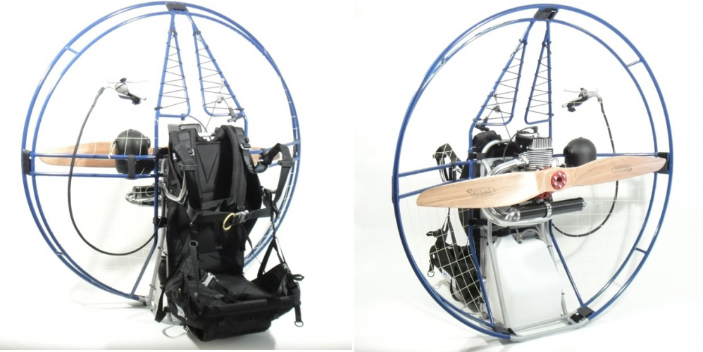 | Propulse 100 evo | Paramotor suitable for pilot weight from 130 lbs. to 200 lbs. Equipped with the Vittorazi Fly 100 evo engine with 18 HP 100 CC. Manual starter, Walbro carburetor, Airbox, chromed tune pipe exhaust with an extra muffler (silencer), start/stop switch and adjustable cruise control. Propulse Paramotor with Aeros Vitamin 32 wing combo...$8500 |